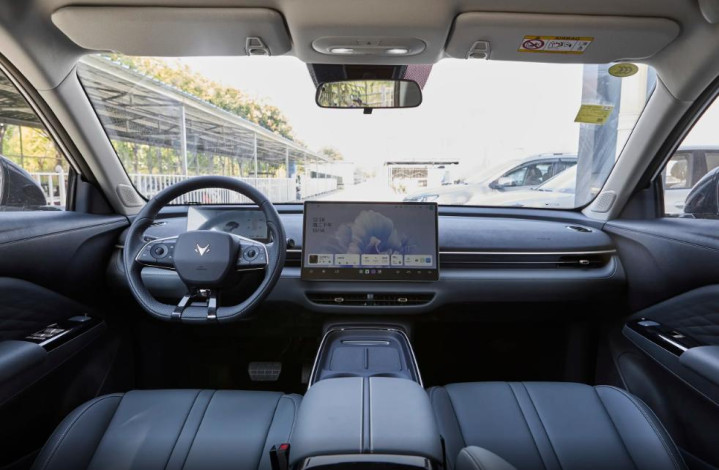 进入车内,双拼色的内饰营造出年轻、温馨的氛围。最吸引人的无疑是那块15.6英寸的悬浮式中控屏,配合8.8英寸液晶仪表,科技感得到了保障。受限于成本,中控台大部分区域为硬质材料,但在常接触的部位如扶手、门板肘托处,仍使用了软性皮质包裹,这种取舍在这个价位段是可以理解的。全系标配的不可开启全景天幕(部分车型带电动遮阳帘)极大地提升了车内开扬感,让小型车常见的压抑感不复存在。